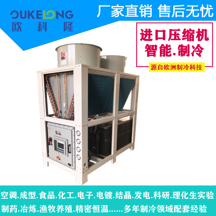 歐科隆20匹低溫防爆冷水機(jī)以安全、穩(wěn)定、高效為核心,適用于各類(lèi)防爆環(huán)境,并提供定制化服務(wù),滿足不同工業(yè)需求。